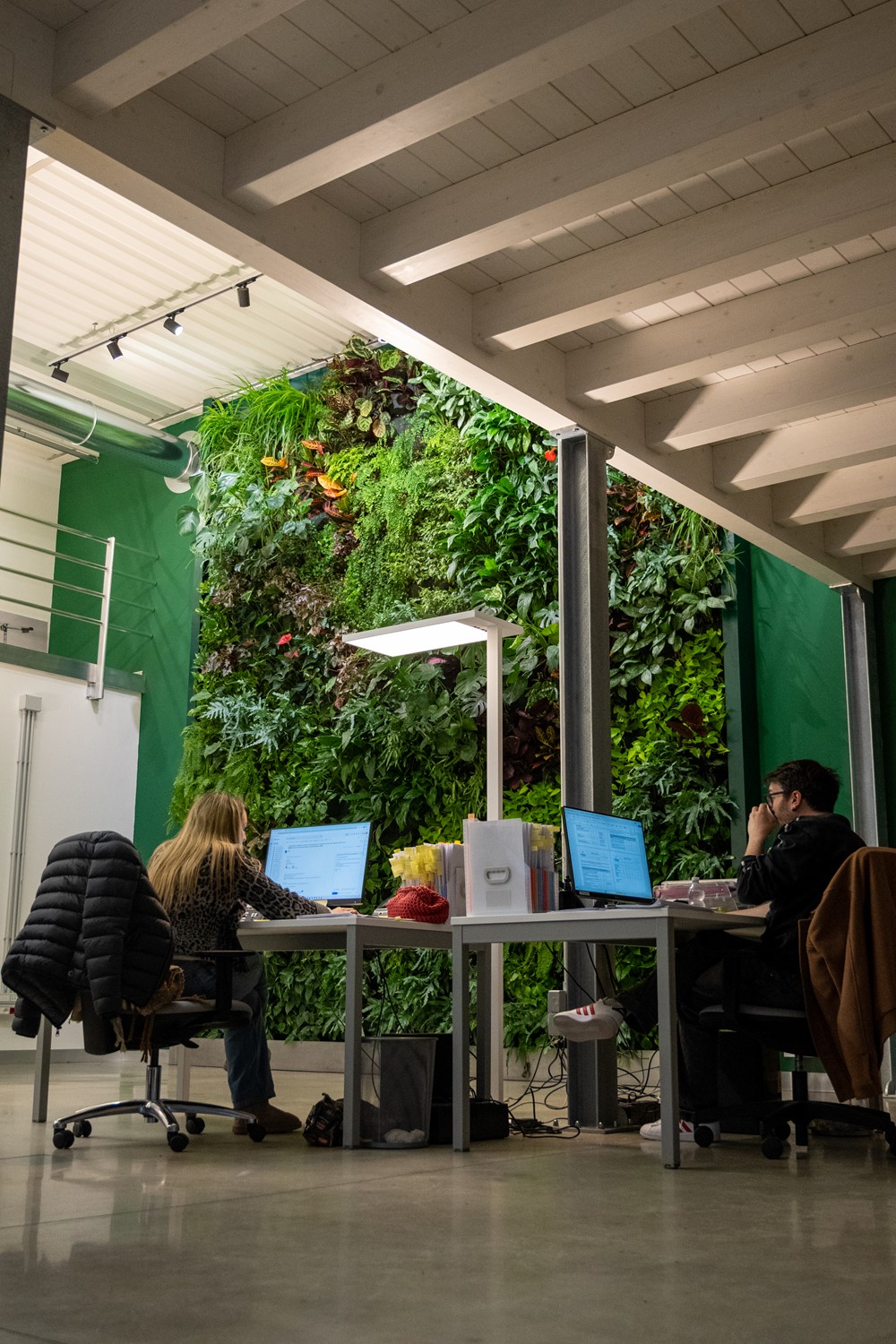 An office living wall always begins with precise technical planning. Light exposure, microclimate, and accessibility guide structural and botanical decisions. Automated irrigation systems and professional maintenance ensure long-term vegetative stability and aesthetic continuity. Specialized management transforms greenery into a true corporate asset—preserving value, performance, and representational quality over time. Vertical greenery in the workplace combines wellbeing, identity, and spatial excellence. It is an investment that strengthens brand image, increases perceived environmental value, and enhances daily human experience.